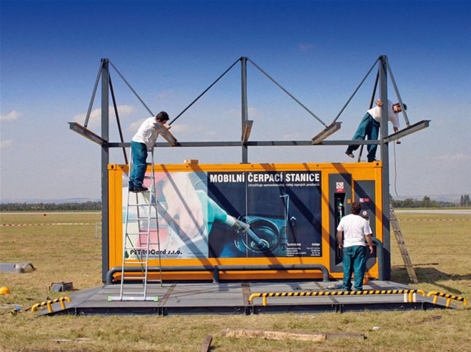 PETROCard Czech proudly presents an original design based on the worldwide patented technology of a large-capacity automatic petrol station intended for dispensing of liquids and gases. It is simply a shipping container with an internal tank and equipment allowing fuels to be dispensed without the need for an attendant.