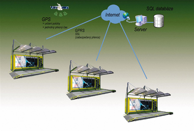 This automat enables the self-service sale or simply issue of fuels with remote control and remote data transfer. When tanking up with liquids, the customer uses a contact-less chip card to pay for the quantity consumed (the chip card serves as an electronic wallet) or simply as identification (the chip card serves as an identification card). The network of filling stations which can be situated anywhere in the world consists of stand-alone liquid vending machines (dispensers). GSM network supporting GPRS transfer is used for communication between the vending machines and the centre. In case that this transfer is not available satellite internet communication can be used.